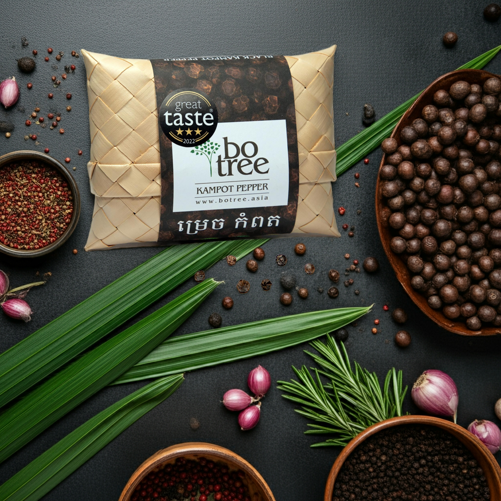Der schwarze Kampot Pfeffer von BoTree hat bei der Beurteilung durch die Preisrichter von great taste eine fantastische 3 Sterne Auszeichnung "Exquisit" in 2022 erhalten